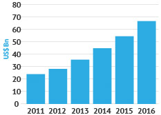 | By 2015, overall SaaS revenue is expected to reach 16% from 10% of the complete enterprise software industry in 2010. Further, it suggests that cloud-based applications and SaaS together are estimated to grow $32.8b in 2016 from $13.5B in 2011. |