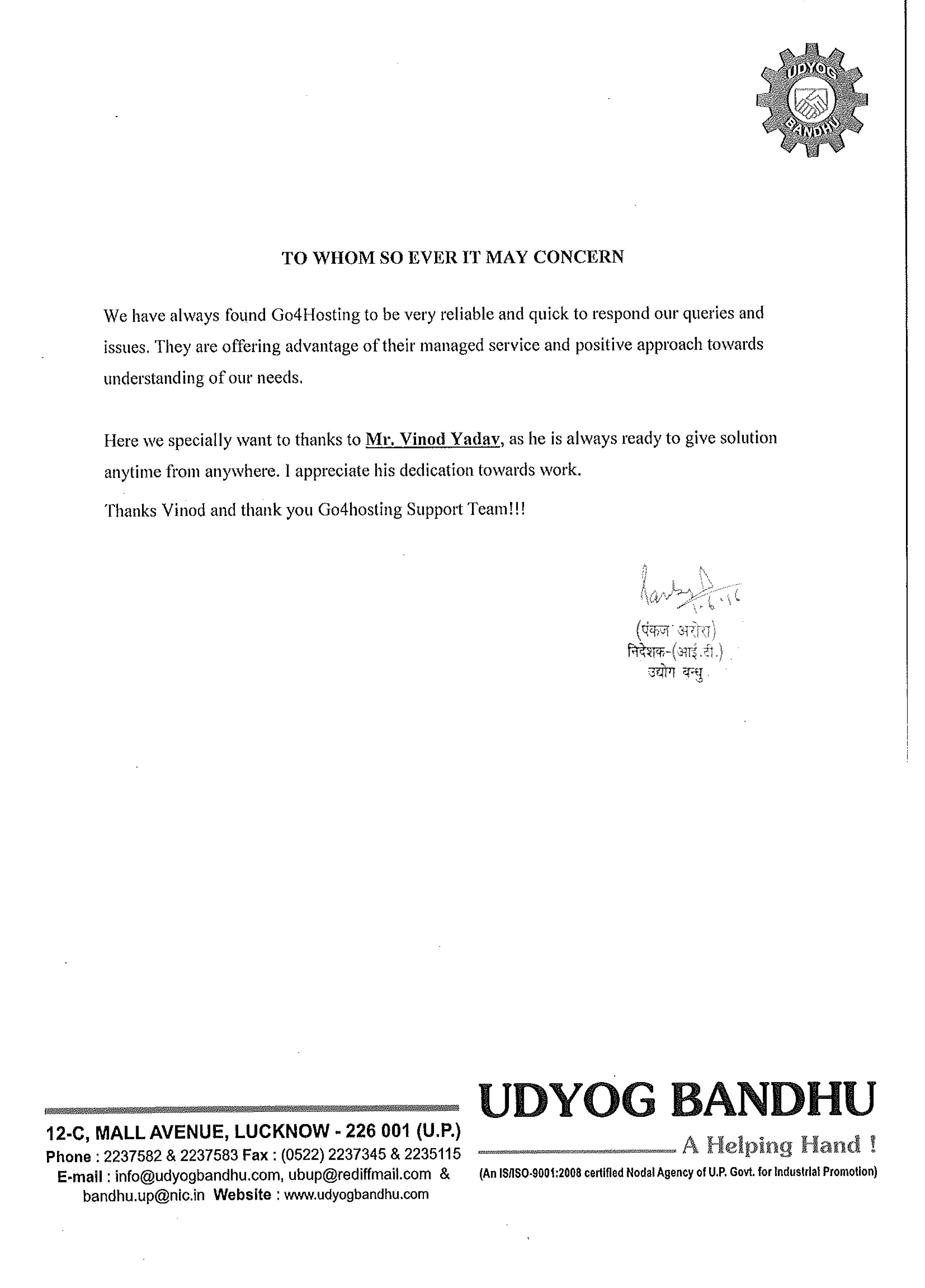 "Udyog Bandhu" is an institution of the State Government of Uttar Pradesh in India; dedicated to speed up Investment in Industrial and Service Sectors, besides solving various troubles of current & forthcoming enterprises as well, related to different Government departments.